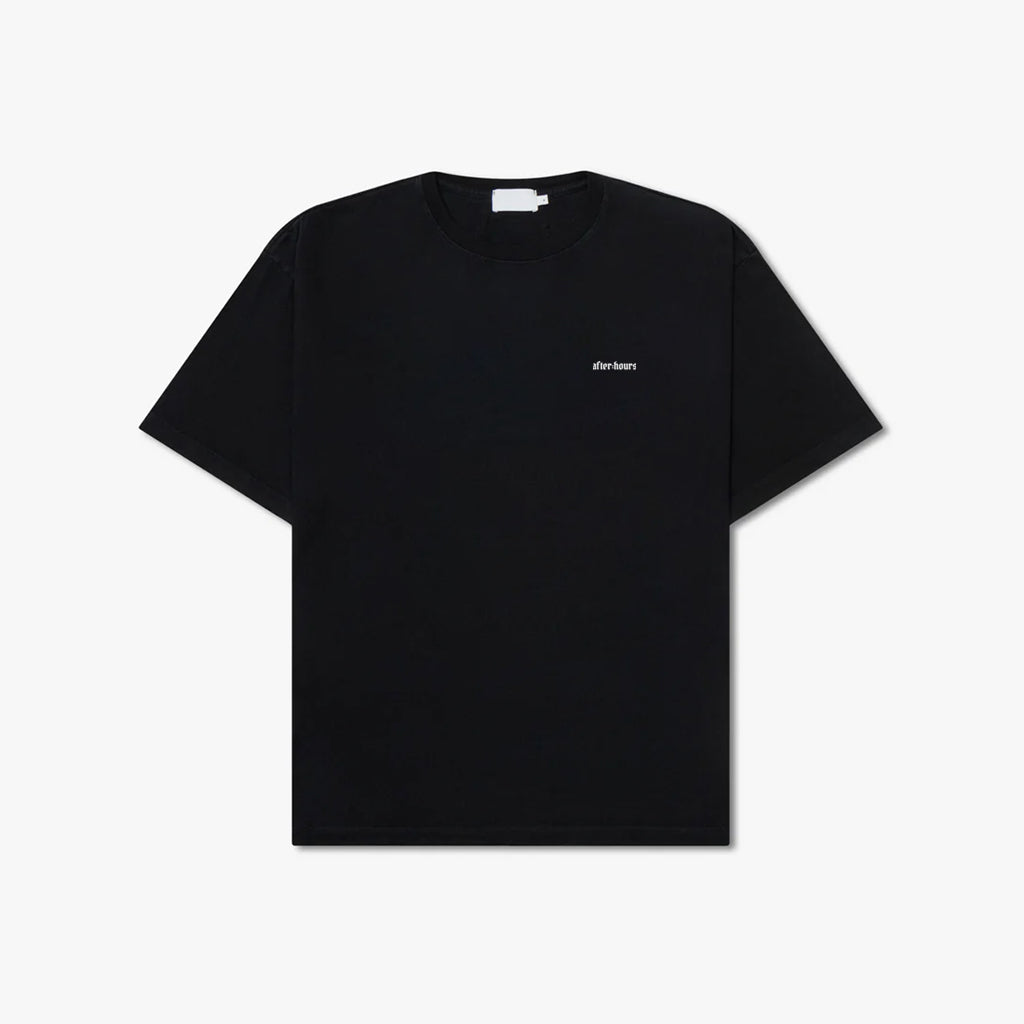 Premium cotton tee shirt with ribbed neckline and short sleeves. Features the limited fire "after:hours" designs fade printed on the back and front left chest.